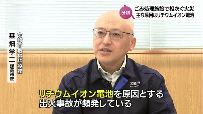 「ごみ収集車やエコクリーンプラザみやざきにおいて、リチウムイオン電池を原因とする出火事故が頻発しております」