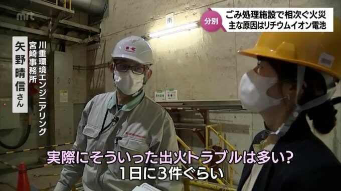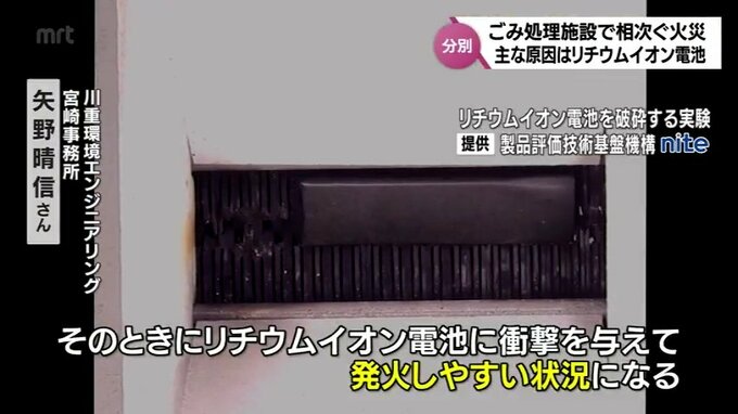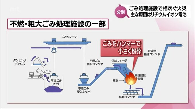 「ごみを落としてハンマーでごみを小さくします。そのときにリチウムイオン電池に衝撃を与えて発火しやすい状況になります」