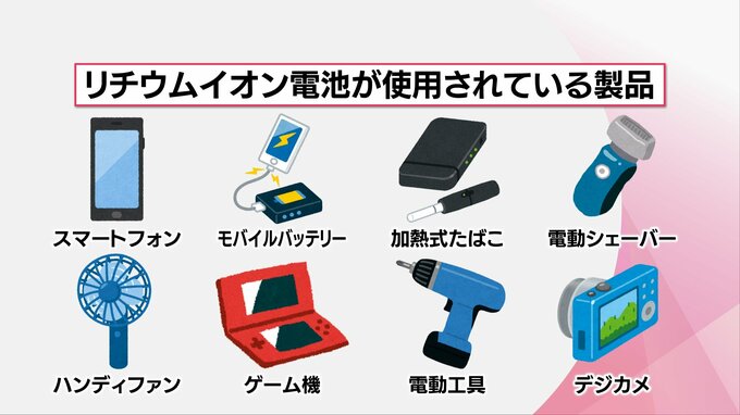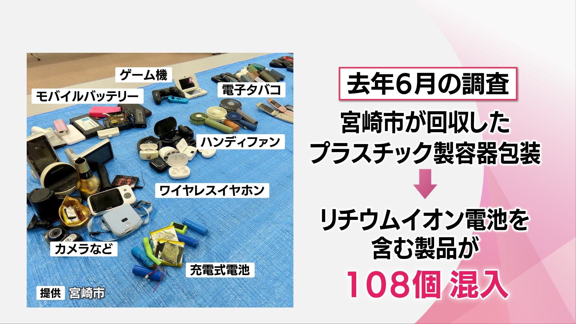去年6月の調査では、市内で収集した「プラスチック製容器包装」のごみに、モバイルバッテリーやワイヤレスイヤホンといったリチウムイオン電池を含む製品が1か月間で108個混入していたそうです。