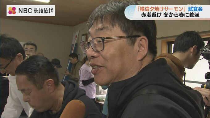 長崎県雲仙市の新たなブランド食材として期待されている養殖サーモンの試食会が12日開かれました。
