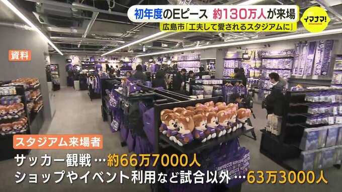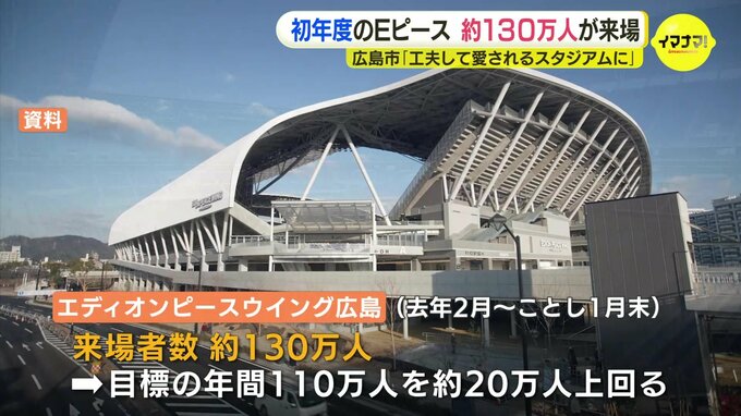 エディオンピースウイング広島の来場者数が去年の開業から1年間でおよそ130万人に達したことが分かりました。オープン初年に加え、サンフレッチェの好成績が影響したとみられています。