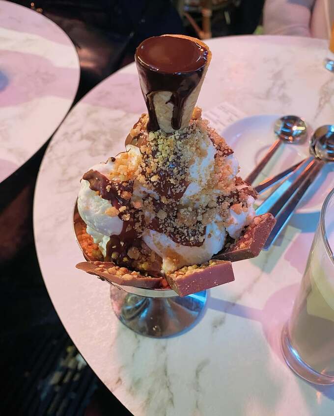 のんさんは「ミラノでジェラートを食べた時のジェラートに大胆に刺さったコーンの中にはホットチョコレートが入ってました」「#スイーツの日」と綴ると、写真をアップ。