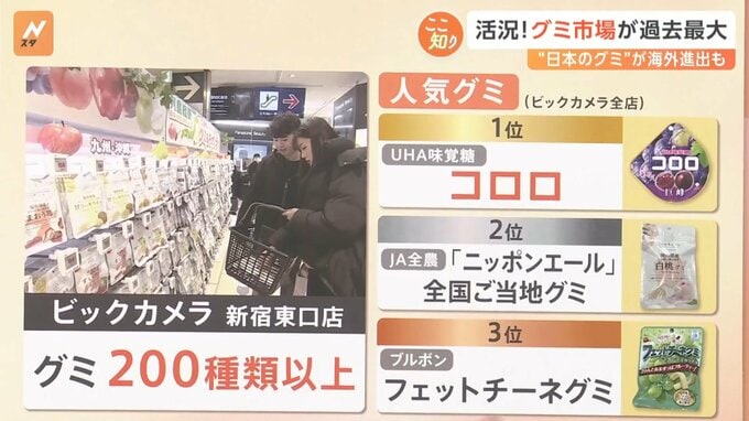 ビックカメラ新宿東口店では、グミを200種類以上取り揃えているといいます。