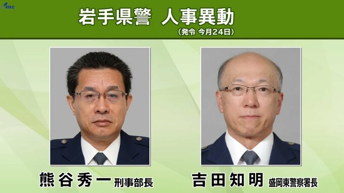 岩手県警の定期人事異動が10日に内示され、刑事部長に盛岡東警察署の熊谷秀一署長が起用されます。生え抜きの最高ポストとなる刑事部長には盛岡東警察署の熊谷秀一署長が起用され、盛岡東警察署の署長には吉田知明…