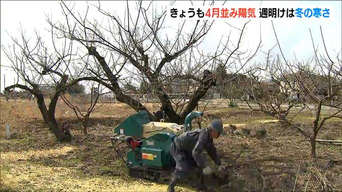 梅農家は剪定した枝の片付けに追われながらも春本番、開花を待ちわびていました。