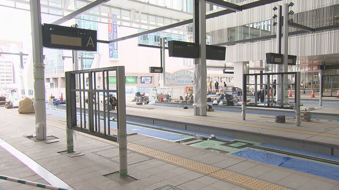 広島電鉄の駅には4本の乗り場があり、ほぼ工事が終わっているということです。改札は設けられておらず、自由通路や商業施設ミナモアとの間をスムーズに行き来できます。