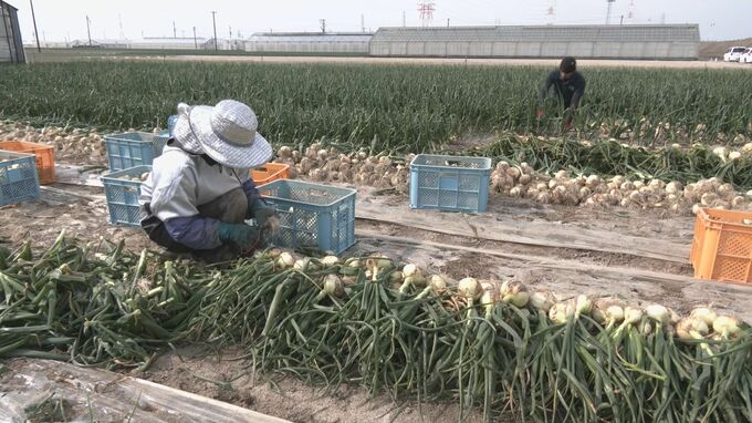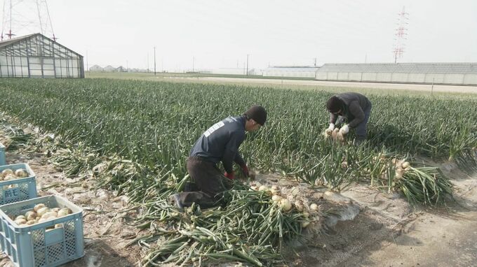 県内有数のタマネギの産地 愛知県碧南市で、生で食べるとおいしい「へきなんサラダたまねぎ」の収穫が始まりました。