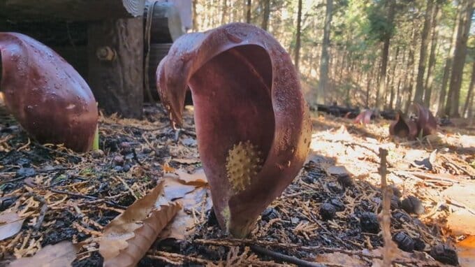 山梨県甲州市の天然記念物「ザゼンソウ」が見頃を迎え、春の訪れを告げています。