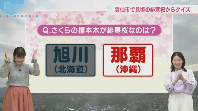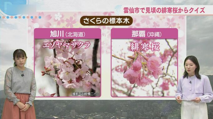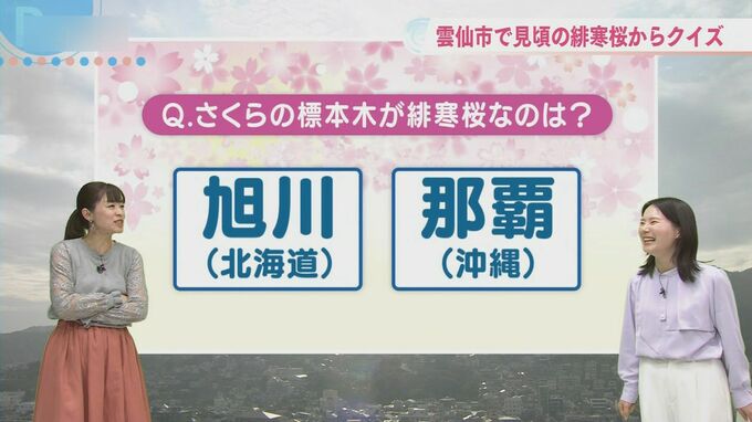 那覇です。沖縄は冬の寒さが足りないため「ソメイヨシノ」を植えても枯れてしまうそうです。そのため、冬暖かくても咲く「緋寒桜」が標本木となっています。開花は平年、成人式の頃です。