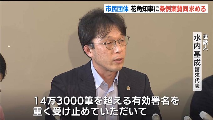 「14万3000筆を超える有効署名を重く受け止めていただいて、ぜひ知事には、この条例案に賛同する意見をつけていただきたい」
