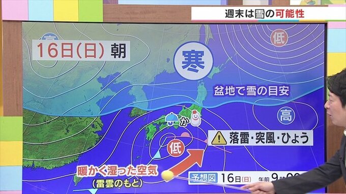 雷雲のもと、つまり低気圧の接近時に大気の状態が不安定となって、落雷や突風、ひょうが起こる恐れもありますので、仮に雪とならなかったとしても、ちょっとこの点には要注意となります。