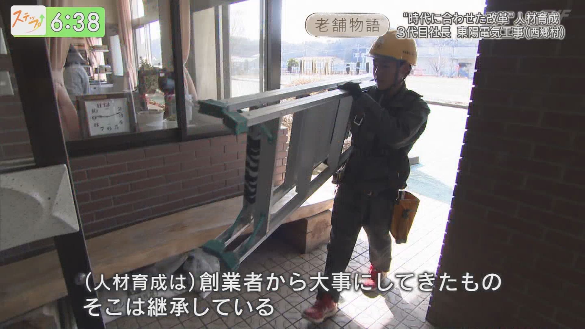 福島県内で長く愛されている老舗の今を伝える『老舗物語』。今回は、西郷村で90年以上続く電気工事を生業とする企業です。事業を継承し続けるため、時代に合わせた社内改革にチャレンジする3代目に注目しました。