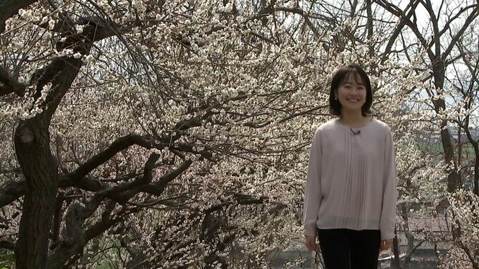 岡山市東区の神崎梅園です。隣接する緑地と合わせて20種類以上、約500本の梅が植えられていて、しだれ梅や白梅が見頃となっています。