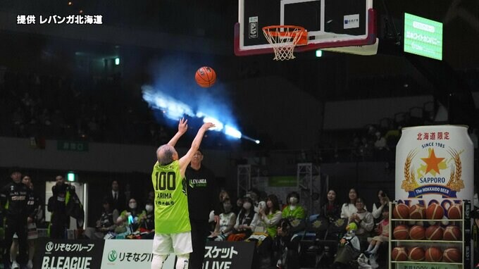 日本最高齢のバスケットボール選手、北海道在住の在間弘さんが12歳から始めたバスケを100歳の節目に引退することを決断。これまでの功績を称え12日、レバンガ北海道のホームアリーナである北海きたえーるで引退試合が開催された。