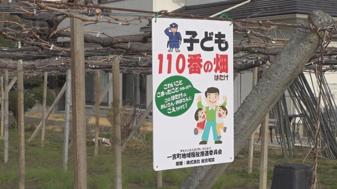 「子ども110番の畑」という取り組みが山梨県笛吹市で進められています。農作業中の住民が畑で子どもたちを見守る活動で全国で初めての取り組みとみられます。笛吹市一宮町のブドウ畑に設置された看板。「困ったこ…