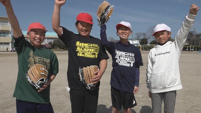 「大谷グローブ」でキャッチボール 憧れの大谷翔平選手 ドジャース開幕戦に児童も熱狂「サイ・ヤング賞とってほしい」