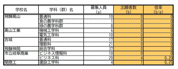 【岐阜県公立高校入試2025】合格者が募集に満たない学校の「第二次選抜」全日制・定時制課程の志願者数・出願状況一覧