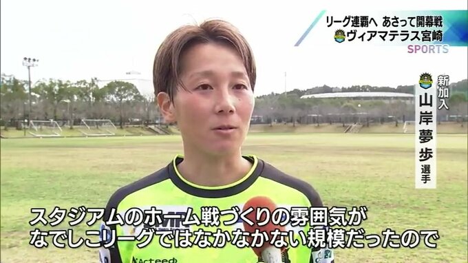 (新加入・山岸夢歩選手)「去年、アウェーで、いちごスタジアムに試合に来たときのヴィアマテラスのファンの方たちの雰囲気だったり、スタジアムのホーム戦作りの雰囲気っていうところが、なでしこリーグではなかなかないぐらいの規模だったので、自分もそういうところで貢献してみたいなとは思っていたのでそれが決めてですね」