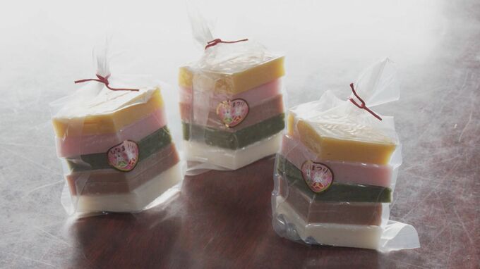 赤カブやカボチャなどで色づけされた5色の鮮やかな「ひし餅」。春の訪れが遅い岐阜県高山市では、1か月遅れてひな祭りを祝う「ひし餅」づくりがピークを迎えています。