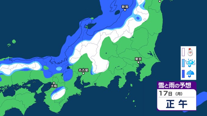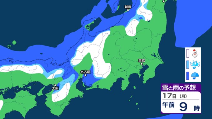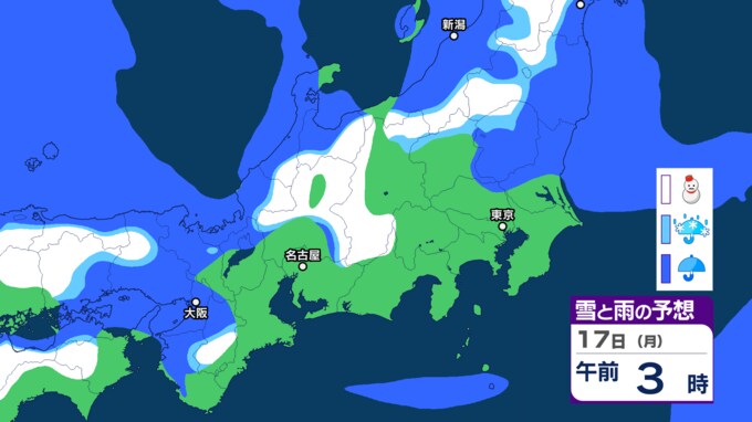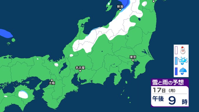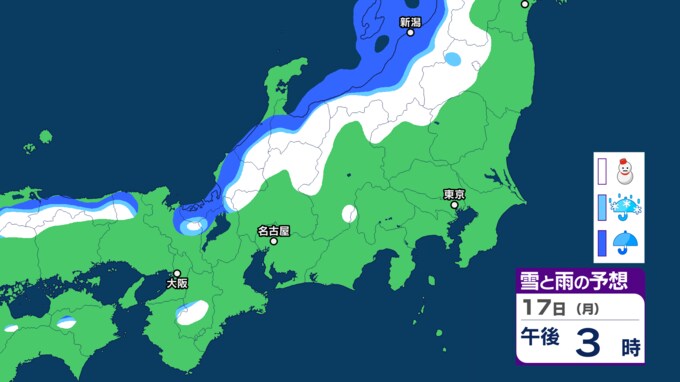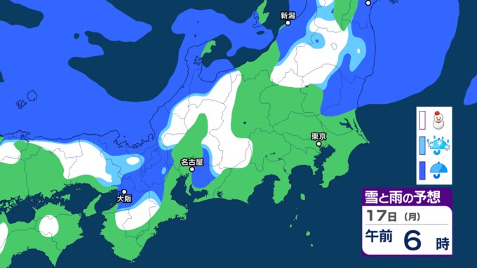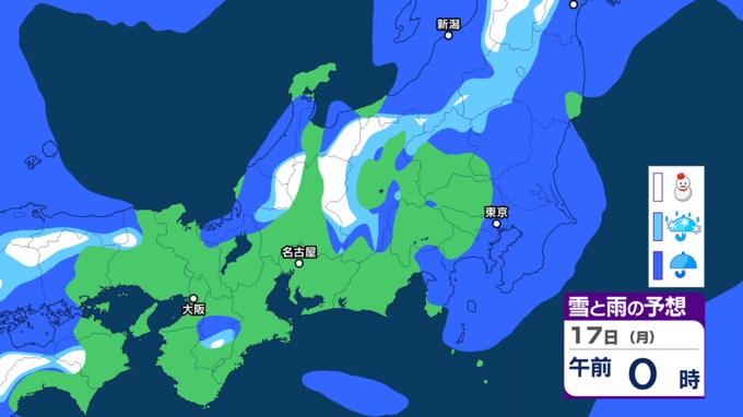 17日(月)の雪と雨の予想
