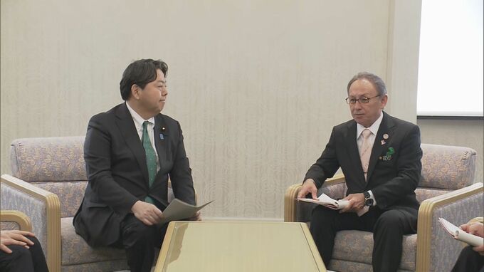 玉城知事は16日、林官房長官と宜野湾市で面談し、沖縄の基地負担軽減に向けて意見を交わしました。