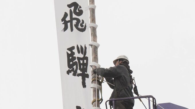 春の高山祭を前に祭りの訪れを告げる巨大なのぼり旗が高山駅前にお目見えしました。国の重要無形民俗文化財やユネスコ無形文化遺産に登録されている「春の高山祭」は来月14日と15日に開催されます。きょうはJR高山…