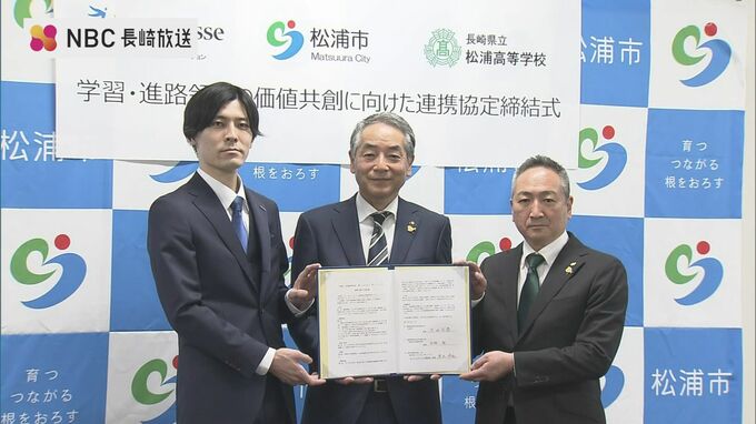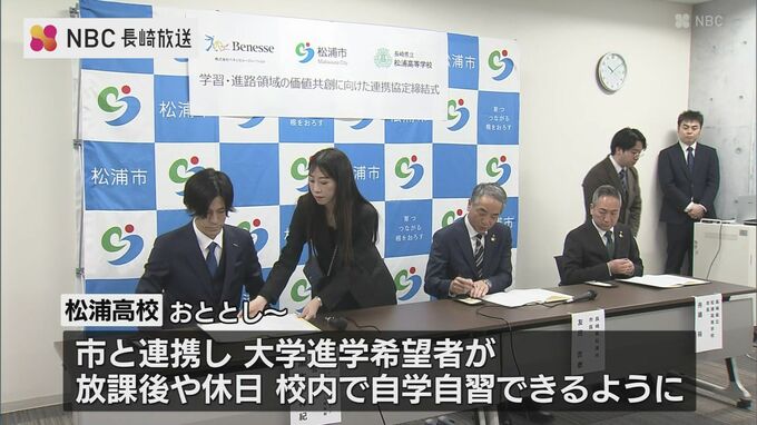 長崎県松浦市と松浦高校は、学習環境の充実をめざし、通信教育大手のベネッセコーポレーションと17日、連携協定を結びました。