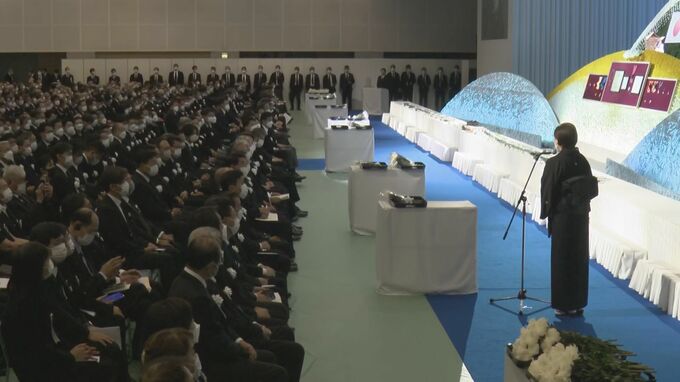 追悼の辞で葬儀委員長の村岡嗣政・山口県知事は「不動の信念と強いリーダーシップで日本の存在を高める姿を、誇らしく感じていた。安倍元総理はたくさんの人の心に、多くの種をまいていかれた。私たちがその種を握りしめ、悲しみを力に変え、それぞれの花を開かせることこそが、安倍元総理が願われていることではないかと感じている」と述べました。