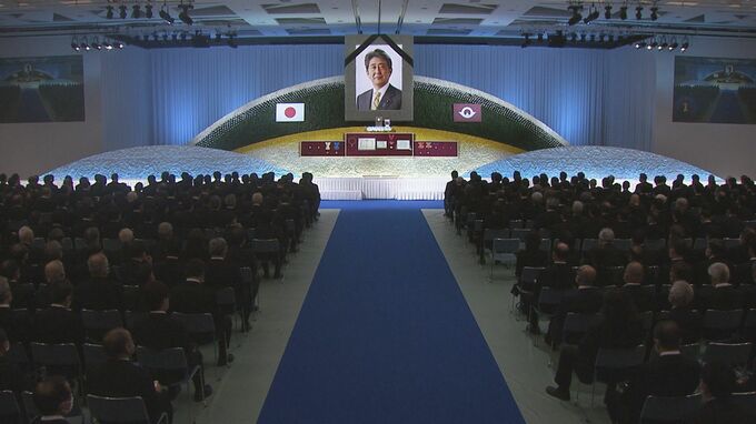 県民葬は海峡メッセ下関をメイン会場に執り行われ、約2000人が参列しました。午後2時から始まった式典では、昭恵夫人が安倍元総理の遺骨を抱えて入場。安倍元総理の在りし日の姿が上映されると、涙をおさえる参列者の姿もありました。