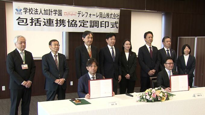 締結式では加計学園の加計役理事長と「デレフォーレ岡山」の尾﨑茂会長が締結書にサインしました。デレフォーレ岡山は、今月(3月)発足した女子ハンドボールのクラブチームで社会人や学生など、11人が所属しています。