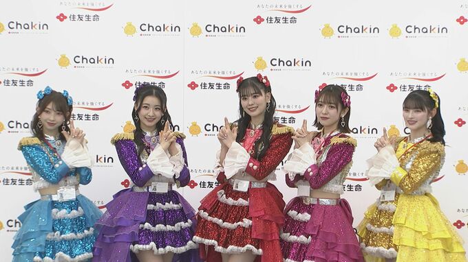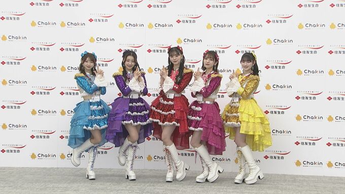 アイドルグループ・超ときめき♡宣伝部の辻野かなみさん、坂井仁香さん、菅田愛貴さん、杏ジュリアさん、小泉遥香さんが、住友生命保険 新WEB CM記者発表会に登壇しました。