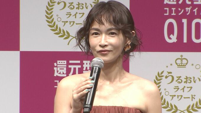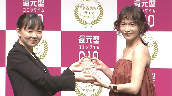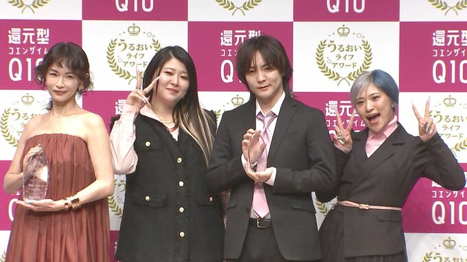 俳優の長谷川京子さんが「還元型コエンザイムQ10プレゼンツ うるおいライフアワード」にお笑いトリオ・ぱーてぃーちゃんとともに出席しました。