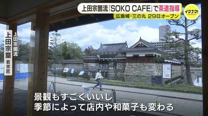 広島城「三の丸」エリアが、3月29日にいよいよオープンします。茶道上田宗箇流が監修するカフェでは、開店に向け、スタッフがお茶のたて方や所作を学びました。上田若宗匠は地元の人や観光客に「気軽に立ち寄ってもらえる店」にしたいと話します。