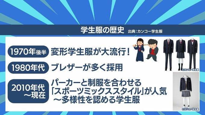 ・2010年代は、パーカーと制服をあわせるスタイルが人気、最近ではパーカーを制服にする学校も登場