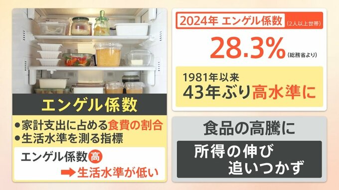 「エンゲル係数」28.3%に 43年ぶりの高水準 “生活水準が低い”ことを示す