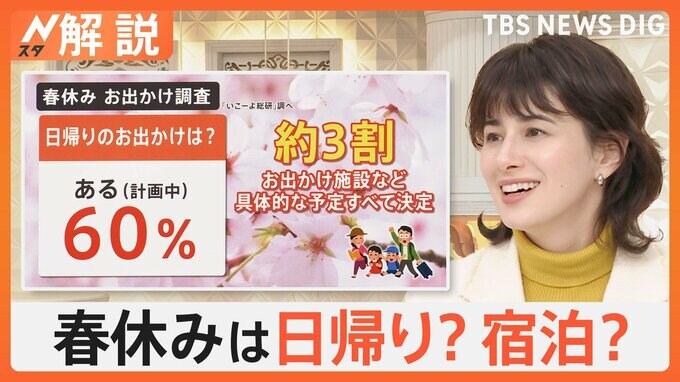 17日に発表された東京の桜の開花予想は22日。いよいよ本格的なお花見シーズンがやってきそうです。南波雅俊キャスター:「いこーよ総研」の調査によると、春休みに「日帰りのお出かけの予定がある(計画中)」と答…