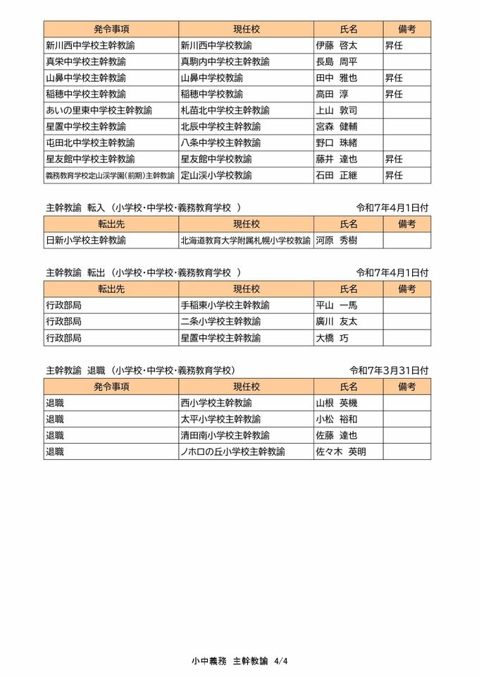 札幌市教職員 人事異動2025「我が恩師はどこへ?」~25日発表分(札幌市立幼・小・中・義務教育学校の教員ほか) 北海道放送 2025年3月25日(火) 00:00 国内 【札幌市立幼稚園・小・中・義務教育学校(教諭・事務職員・栄養教諭ほか)】