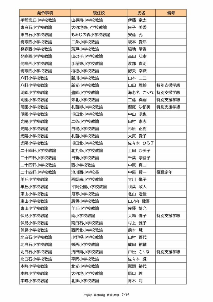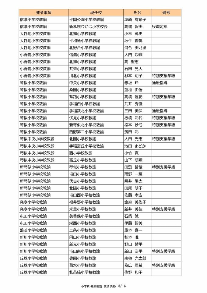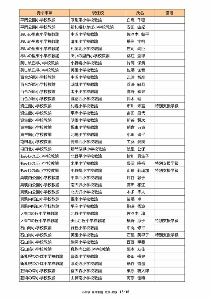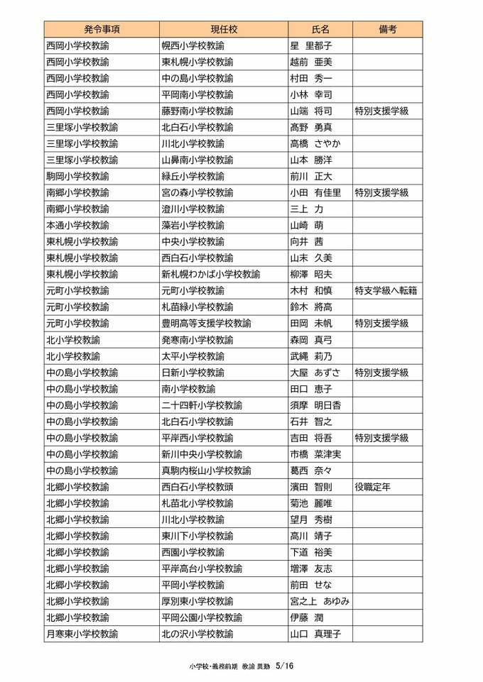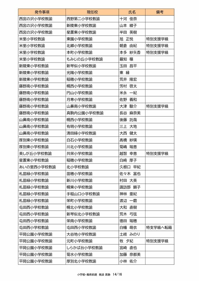 札幌市教職員 人事異動2025「我が恩師はどこへ?」~25日発表分(札幌市立幼・小・中・義務教育学校の教員ほか) 北海道放送 2025年3月25日(火) 00:00 国内 【教諭異動(小学校・義務教育学校前期)】