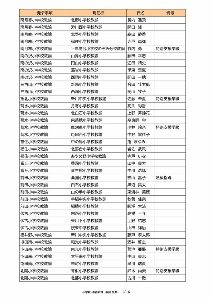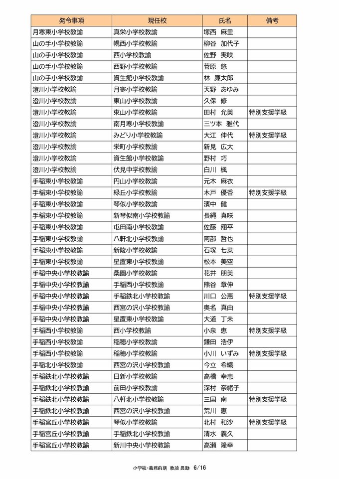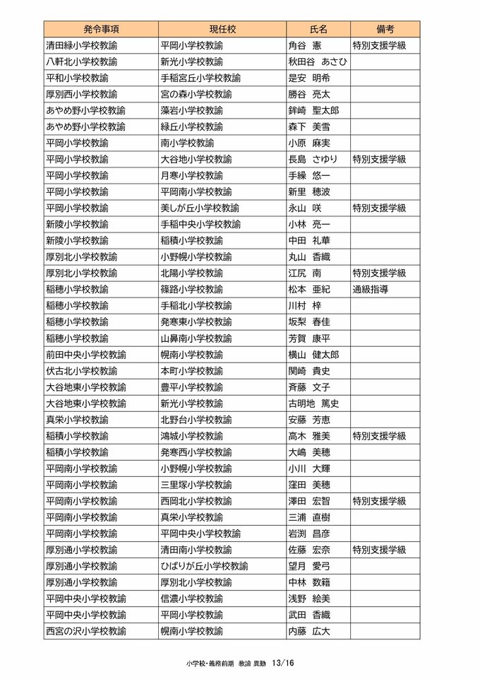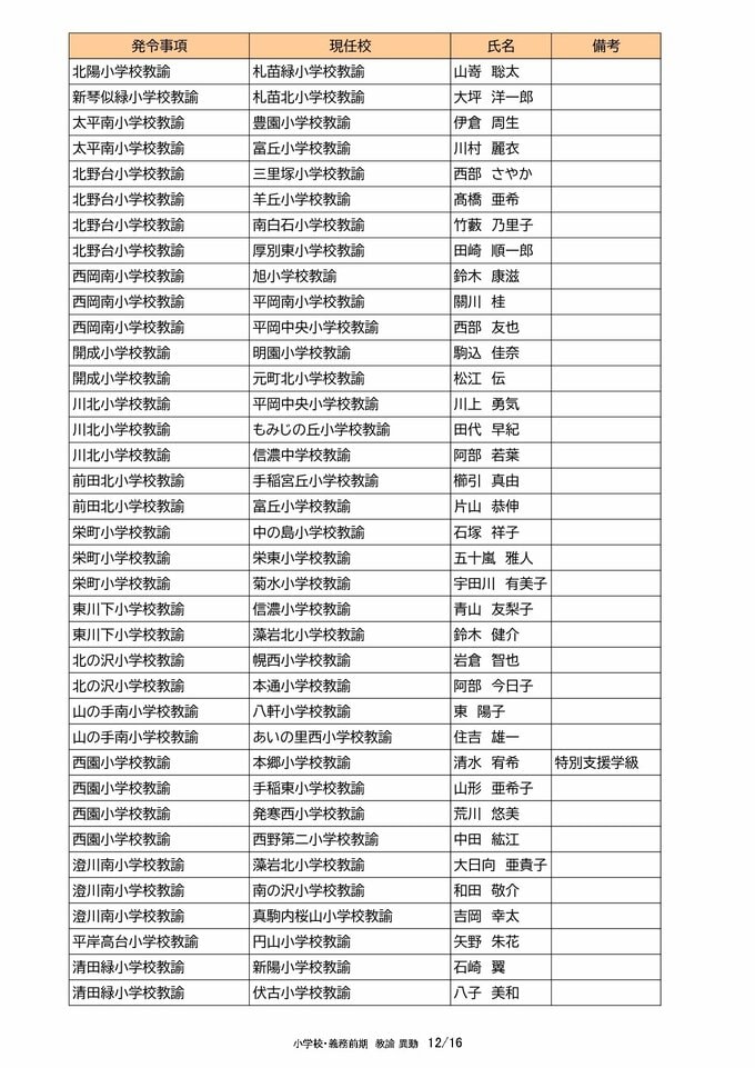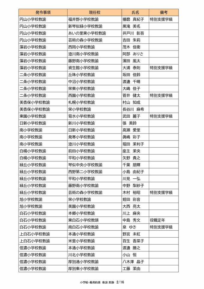 札幌市教職員 人事異動2025「我が恩師はどこへ?」~25日発表分(札幌市立幼・小・中・義務教育学校の教員ほか) 北海道放送 2025年3月25日(火) 00:00 国内 【教諭異動(小学校・義務教育学校前期)】