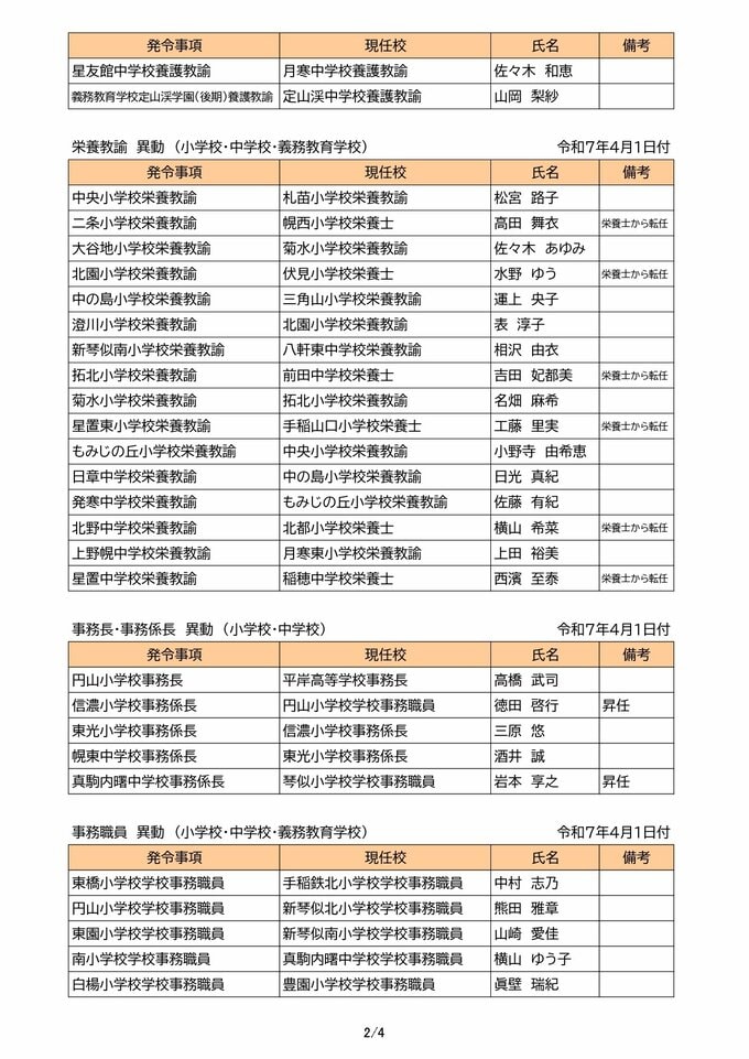 札幌市教職員 人事異動2025「我が恩師はどこへ?」~25日発表分(札幌市立幼・小・中・義務教育学校の教員ほか) 北海道放送 2025年3月25日(火) 00:00 国内 【養護教諭(幼稚園・小学校・中学校・義務教育学校)】