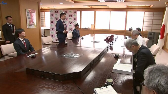 銀次さんは2024年の盛岡での試合が雨で中止となったことも踏まえて「パワーアップした楽天を見せたい」と話すと、佐々木副知事は「リーグ優勝、日本一達成を応援している」と述べチームを激励しました。