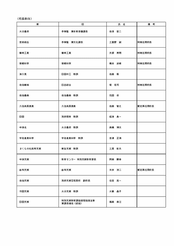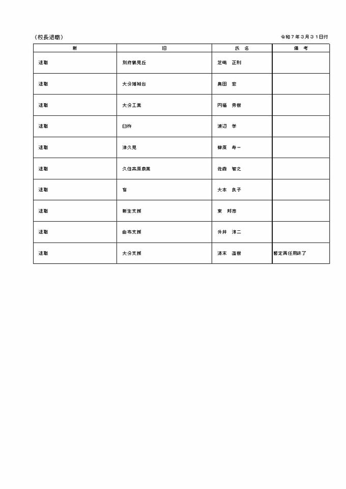 3. 大分県教職員人事異動 県立高校の校長ら幹部職員2025【校長、副校長、教頭、事務長の名簿一覧掲載】