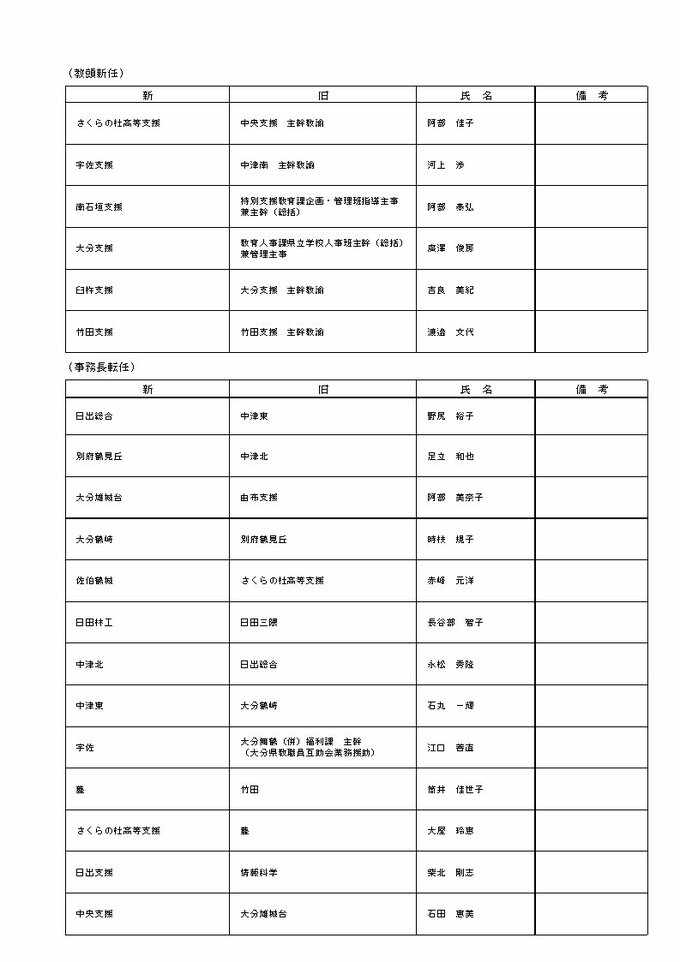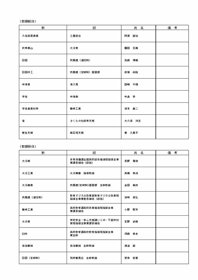 3. 大分県教職員人事異動 県立高校の校長ら幹部職員2025【校長、副校長、教頭、事務長の名簿一覧掲載】