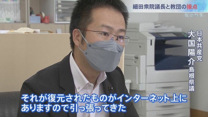 細田重雄氏と教団関連団体との深い関係を指摘する人物がいる。大国県議だ。