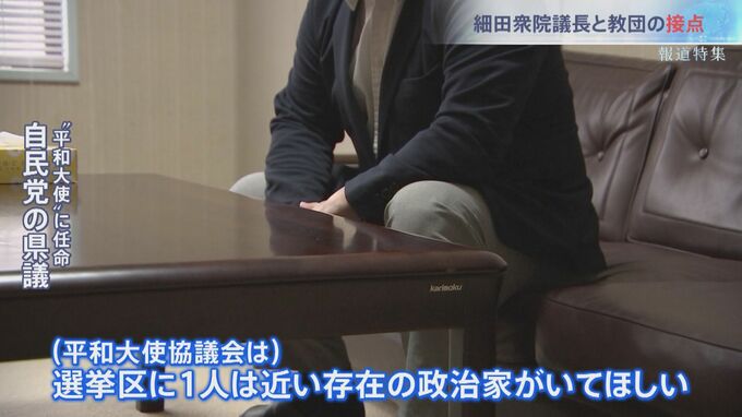 事務局長は教団の肩書は告げず、平和大使協議会として、県議になる前から近づいてきたという。