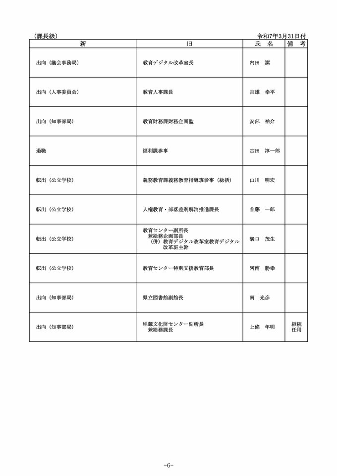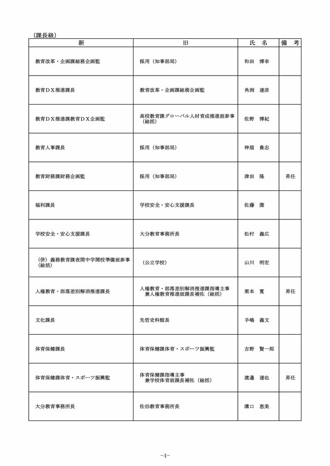 大分県教育庁幹部職員 定期人事異動2025【課長級以上の名簿一覧掲載】