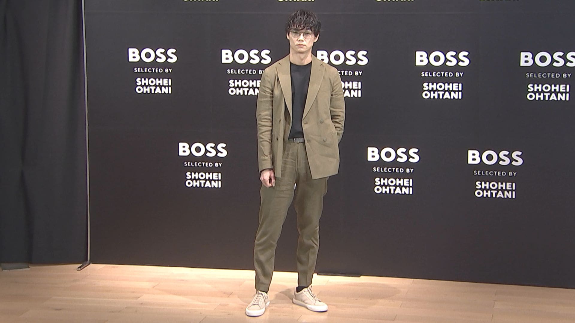 BOSSのアンバサダーを務めるドジャース・大谷翔平選手が厳選した春夏シーズン新コレクションを纏って登場した笠松さん。