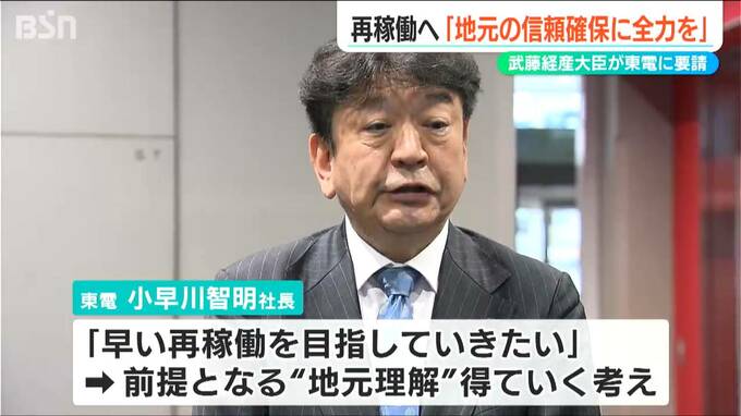 柏崎刈羽原発の再稼働に向けて、武藤 経済産業大臣が「地元からの信頼確保に全力を尽くしてほしい」と東京電力のトップに要請しました。