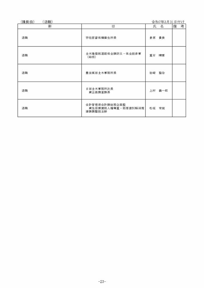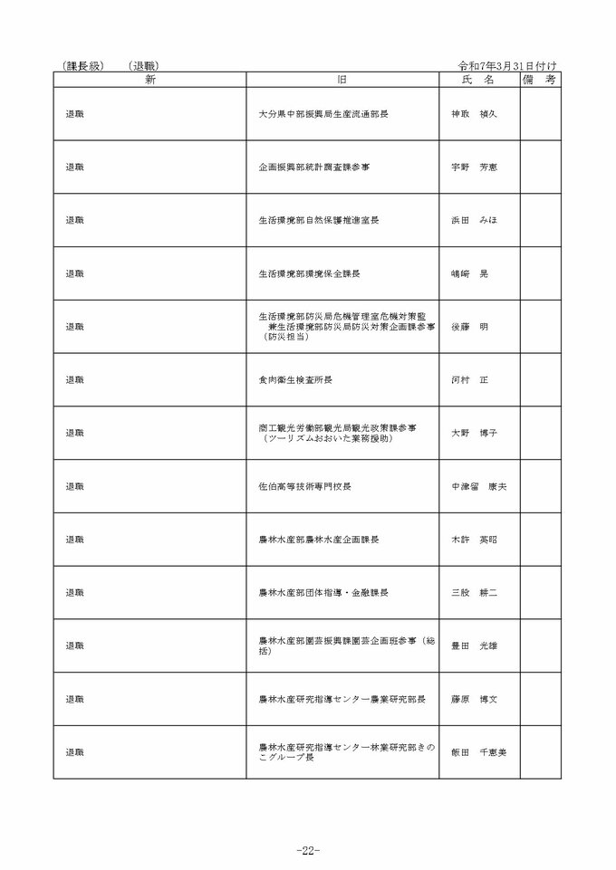 3. 大分県職員人事異動2025【特別職、部長級、次長級、課長級の名簿一覧掲載】