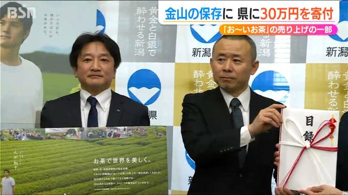 世界遺産に登録された「佐渡島の金山」の保全活動に役立ててもらおうと大手飲料メーカーの伊藤園が18日、県に寄付金を贈りました。伊藤園は佐渡金山の世界遺産登録を後押ししようと「お~いお茶」の売り上げの一部…